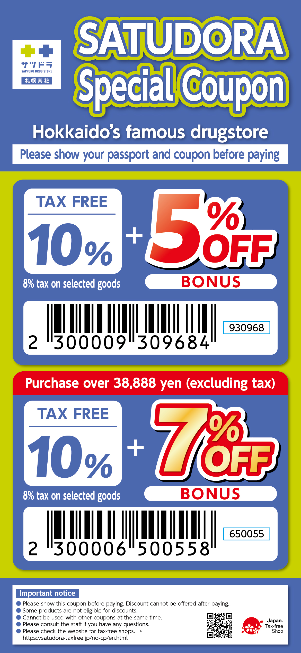 - This coupon is valid for tax-free shopping only.