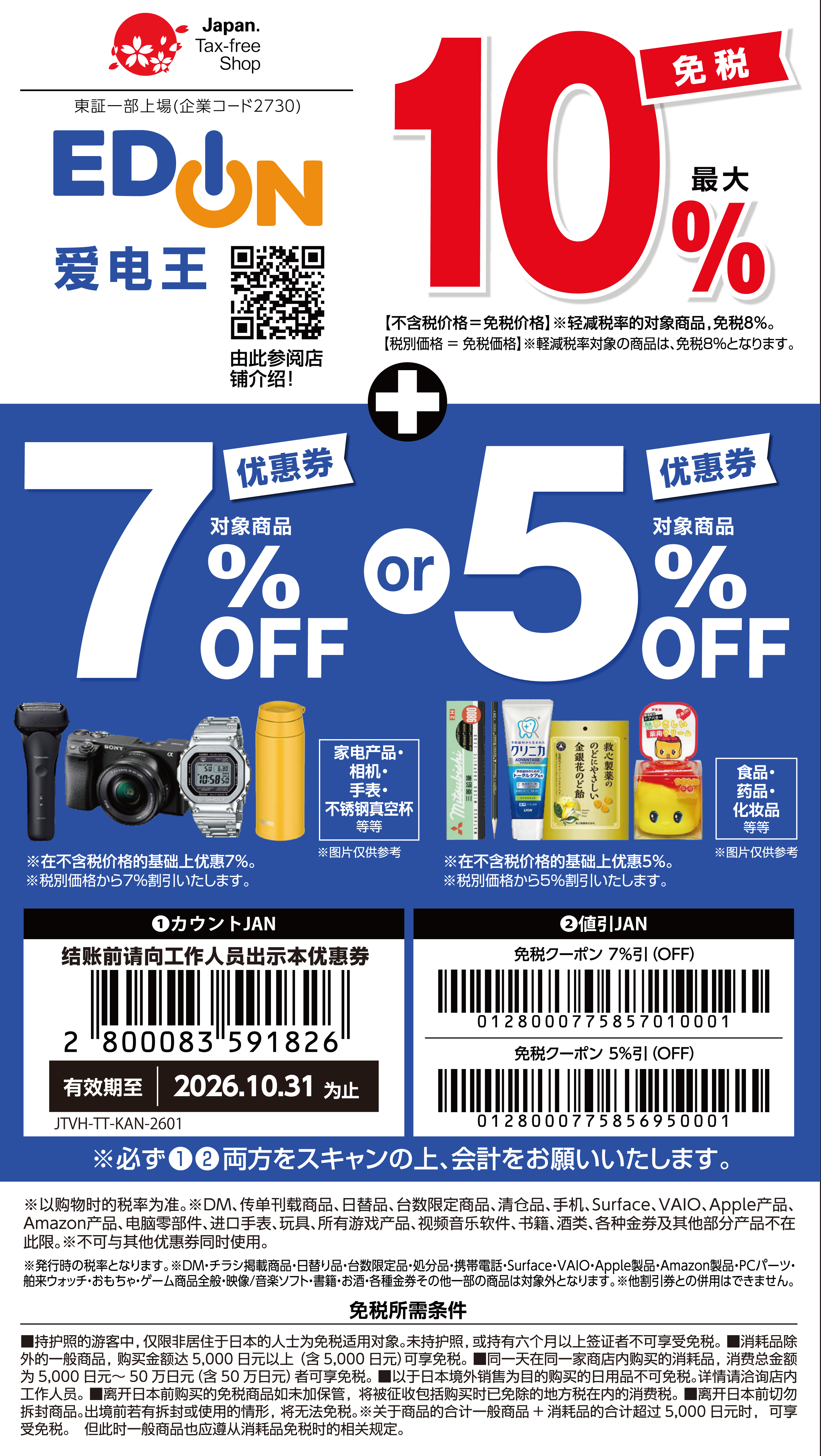 - 适用对象:出示护照且不居住在日本的访日旅客